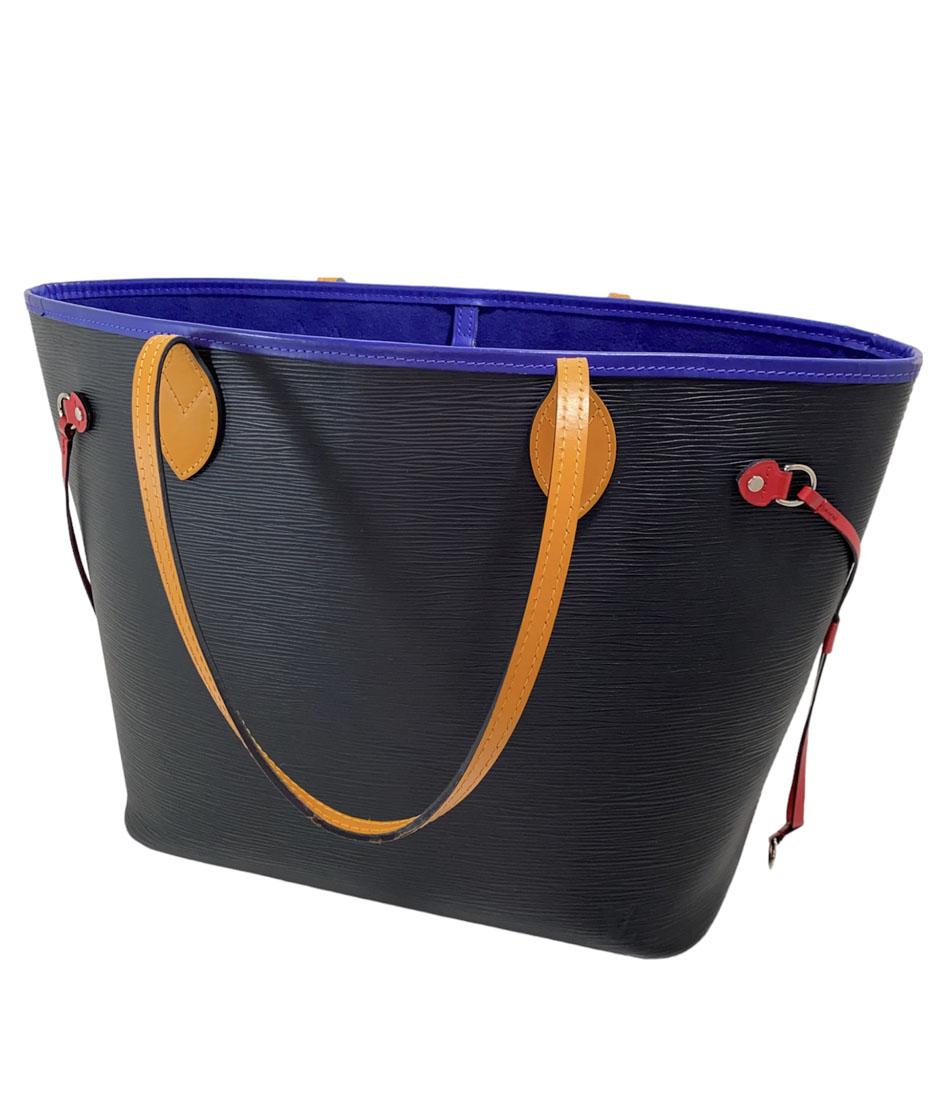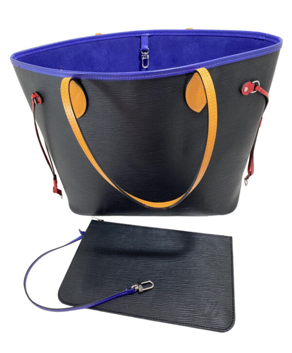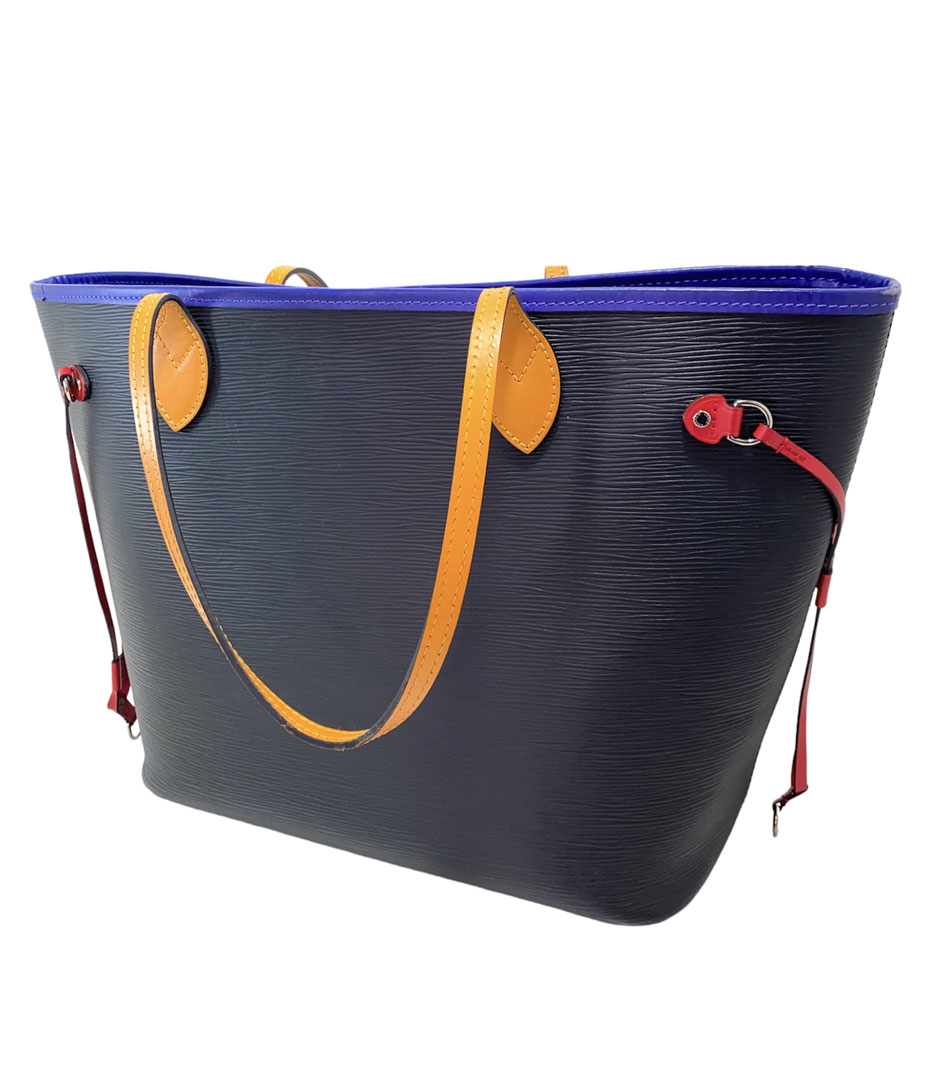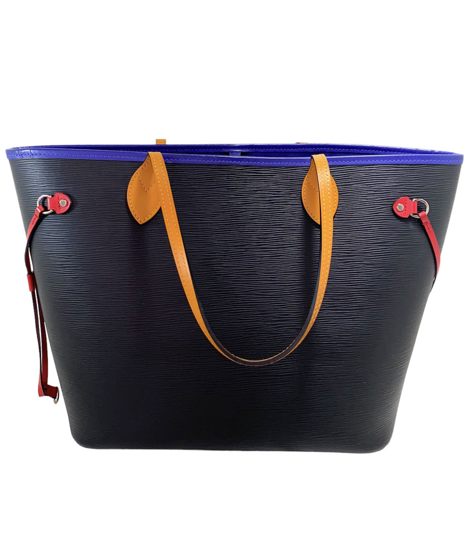 Neverfull tote bag en cuero Epi color negro con asas y detalles en cuero de colores. Edición especial. Tamaño MM.