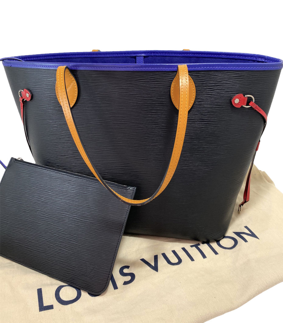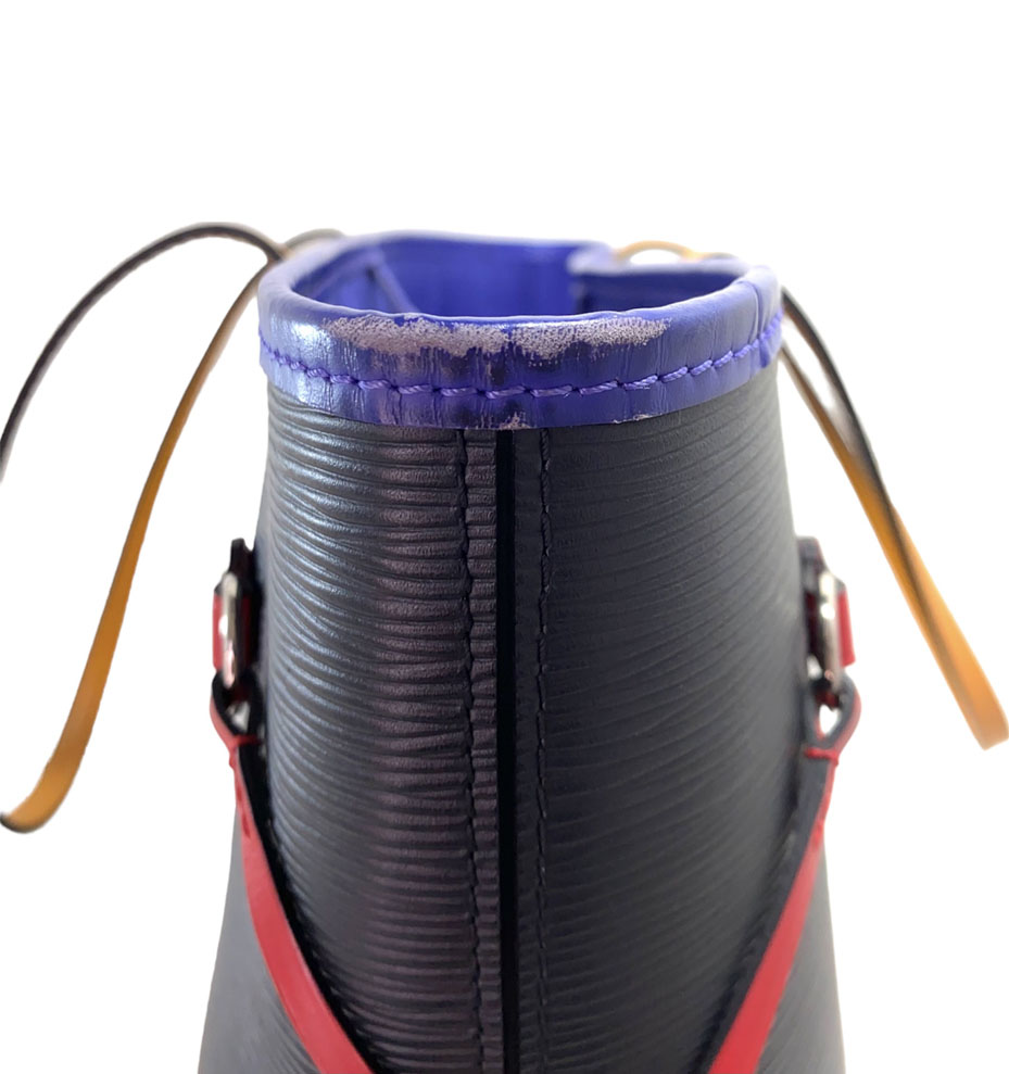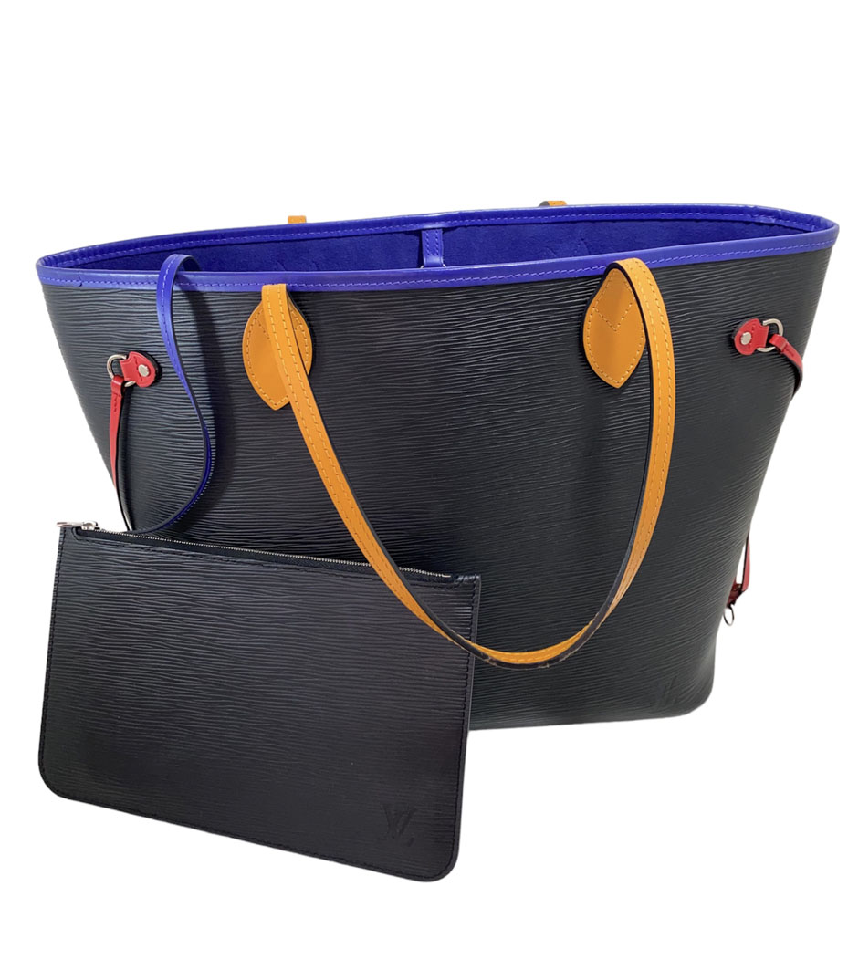 Neverfull tote bag en cuero Epi color negro con asas y detalles en cuero de colores. Edición especial. Tamaño MM.