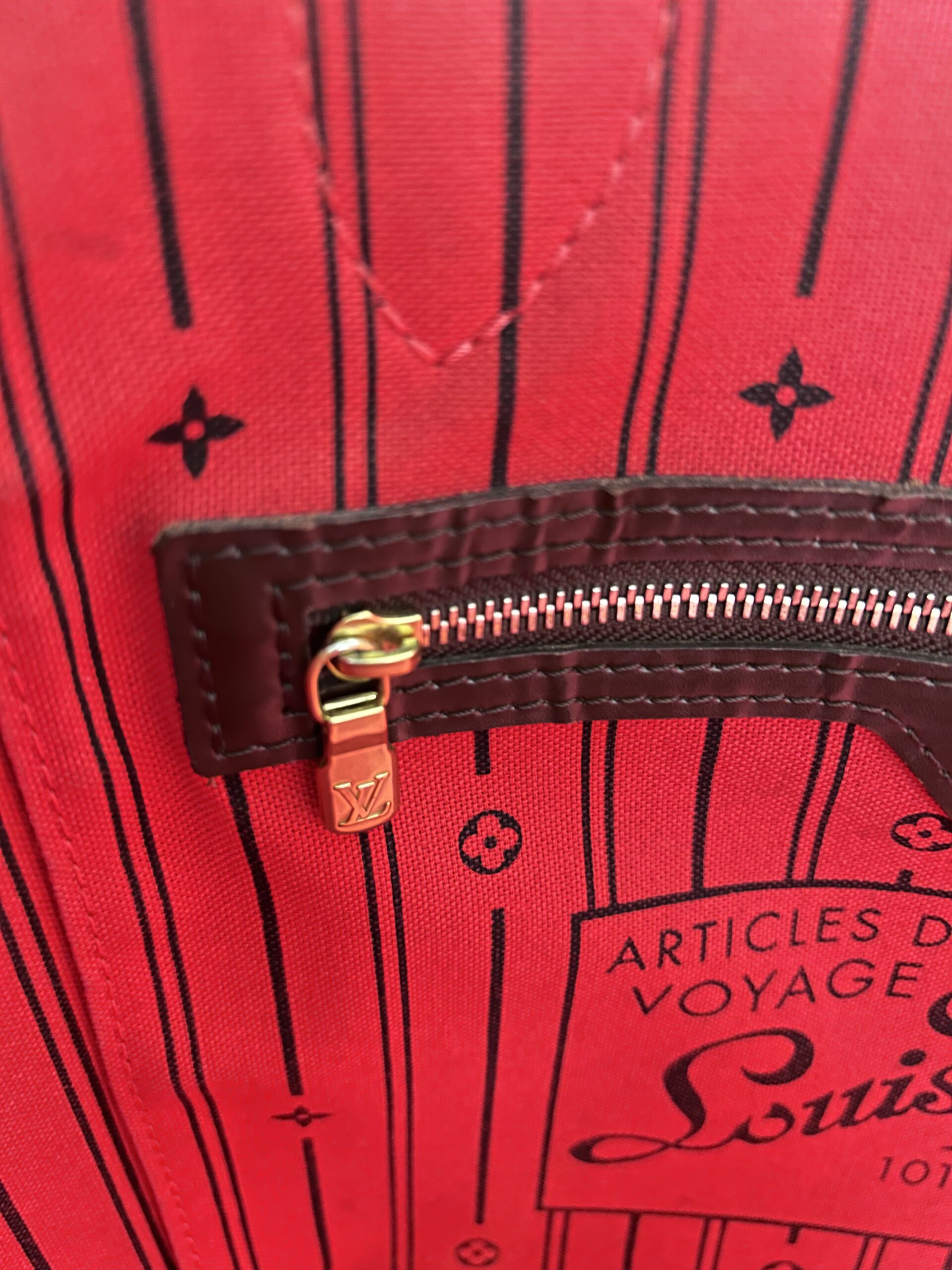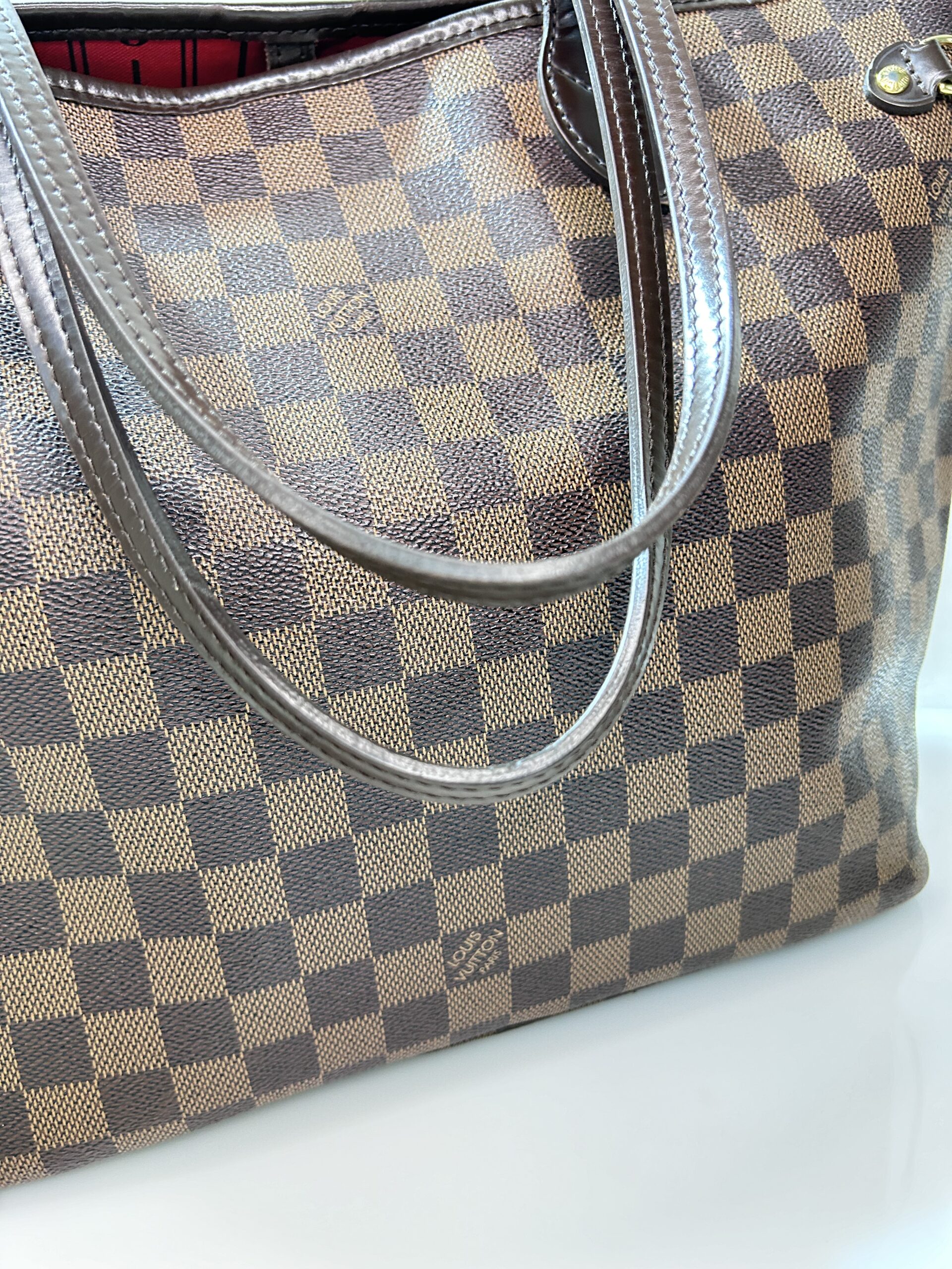 Louis Vuitton “Neverfull” MM Damier Ebene monogram tote bag