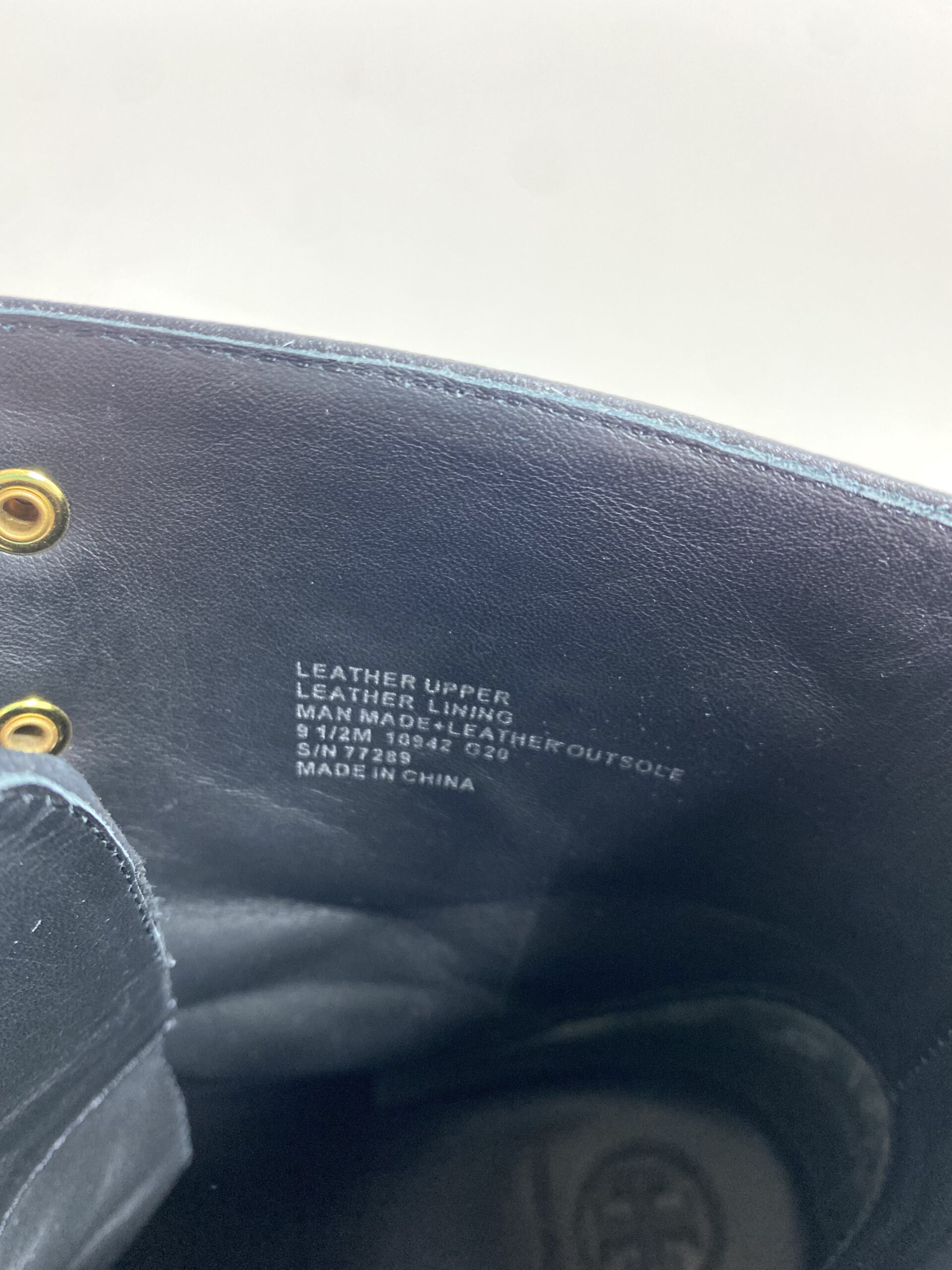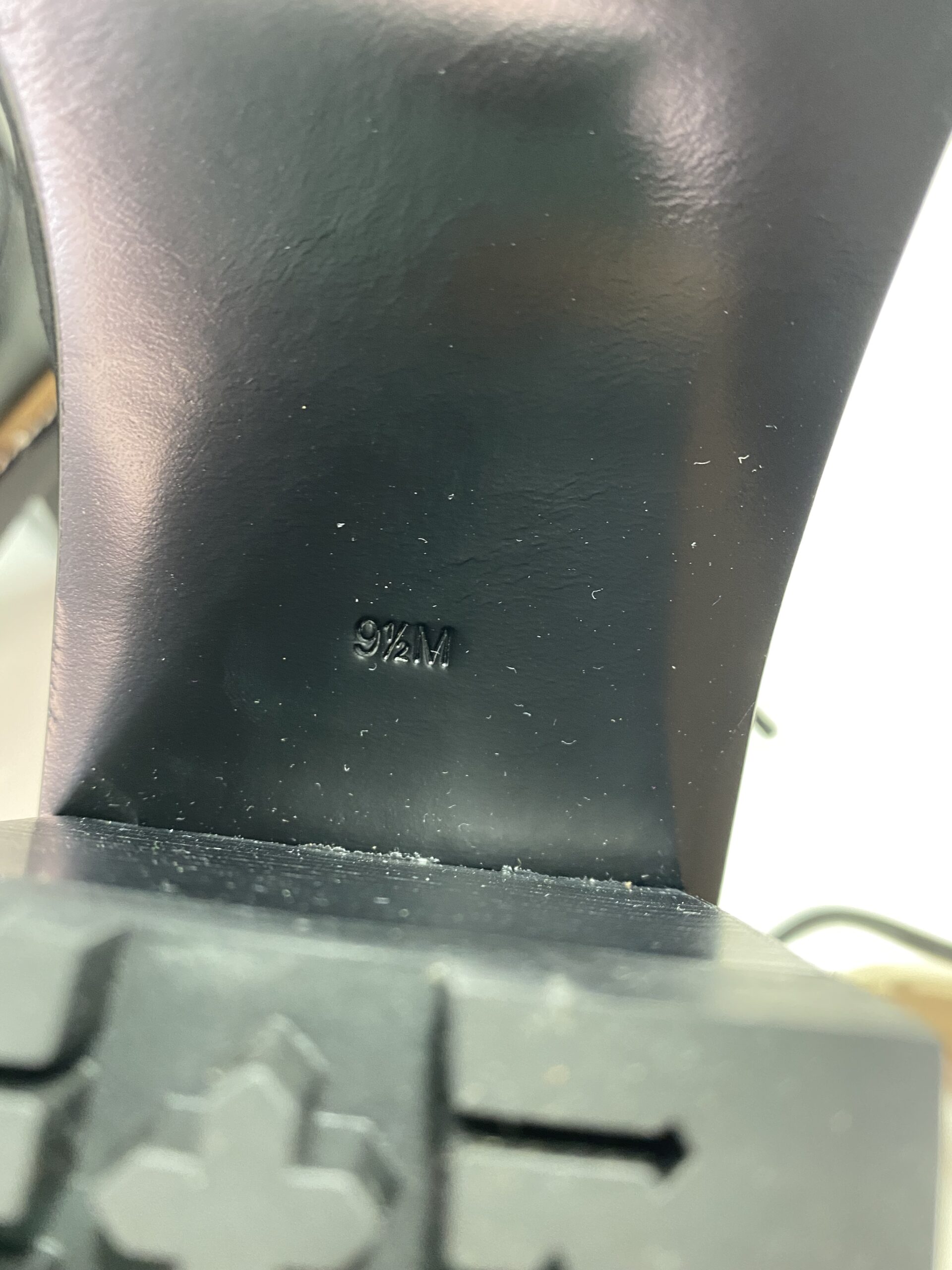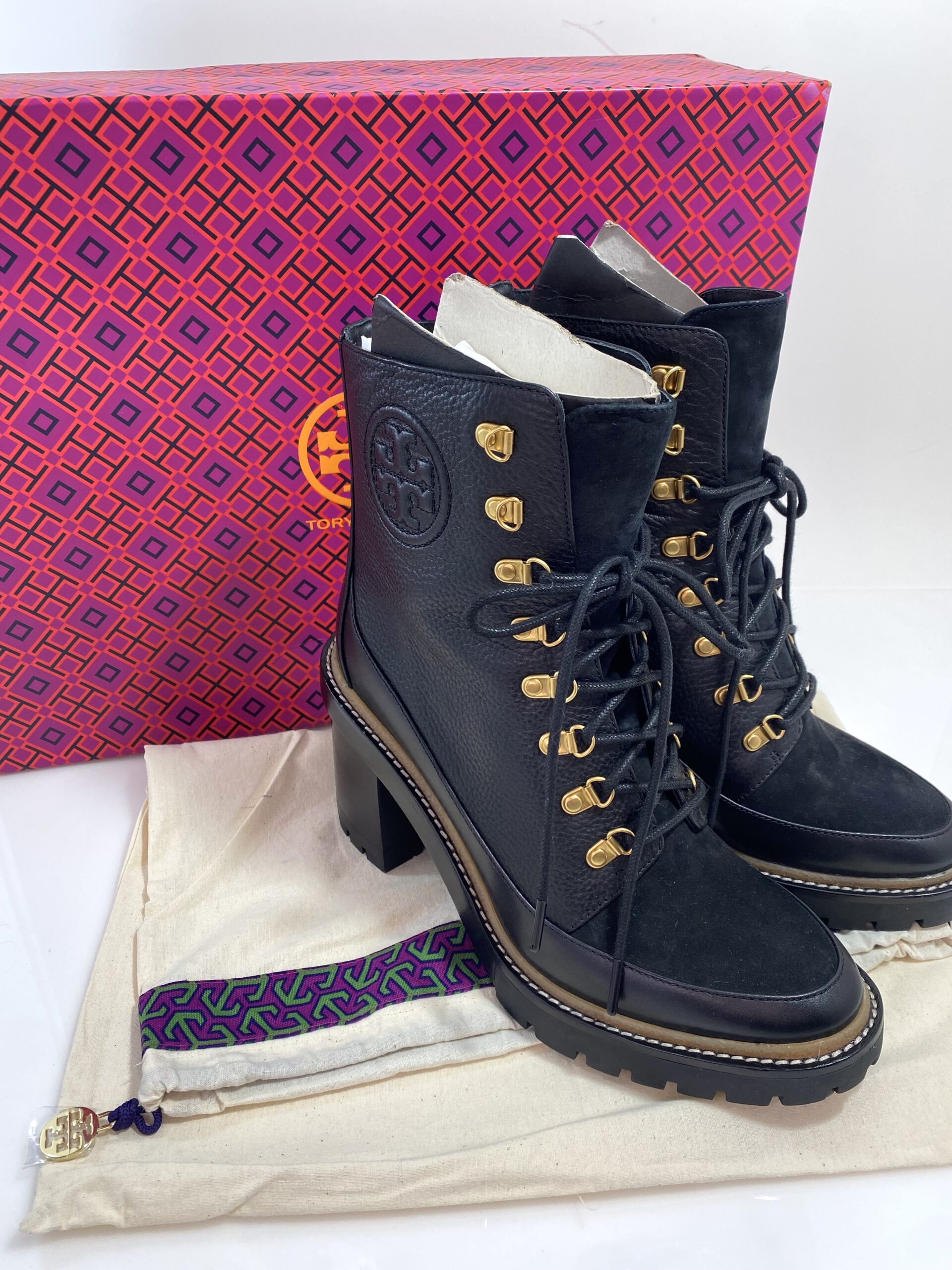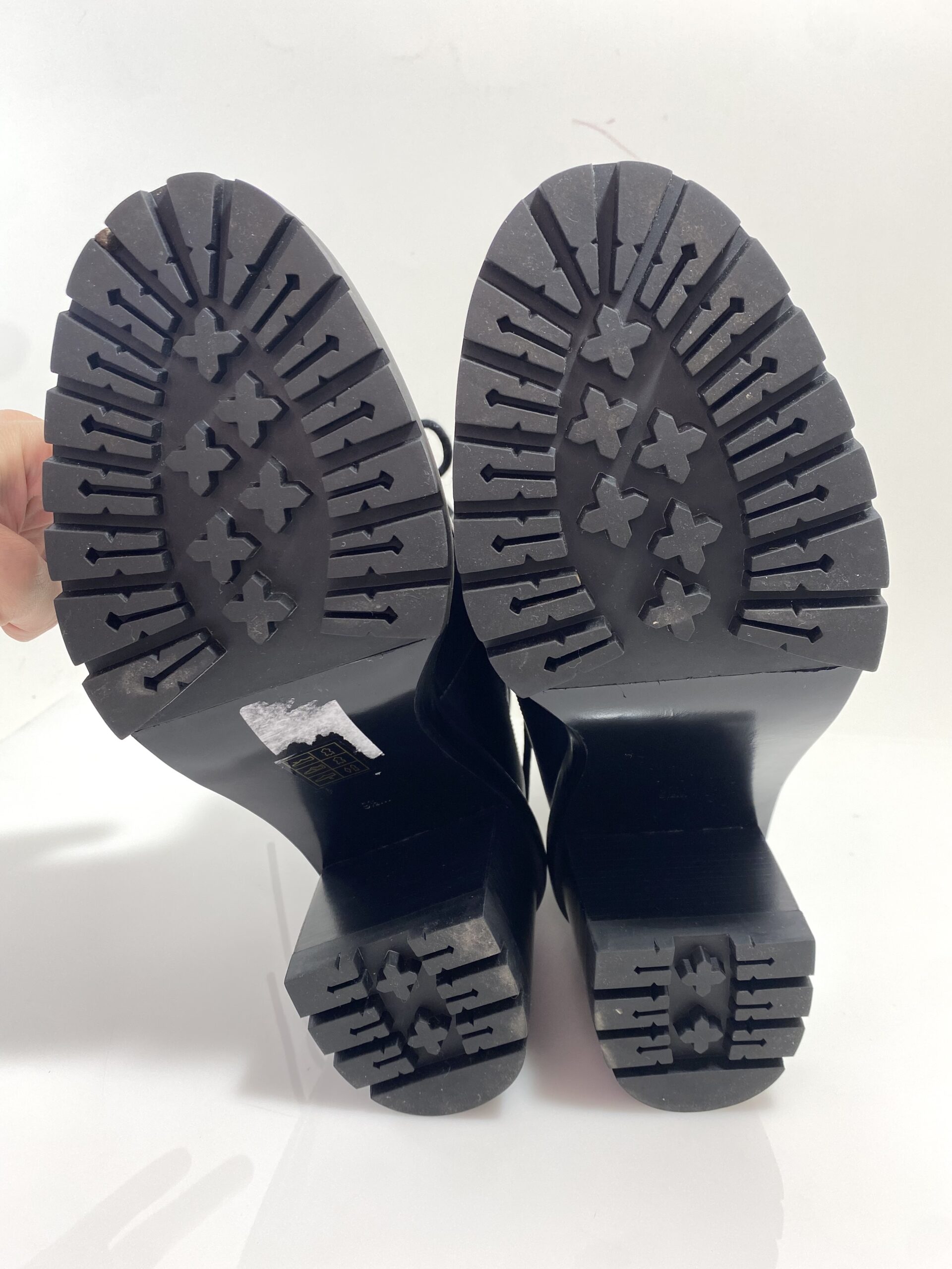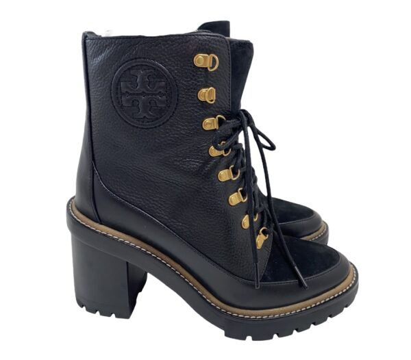 Botas caño corto de cuero gamuzado y liso color negro. Con cordones en color negro. Taco medio, ancho. Suela gruesa de caucho. Interior en cuero negro. Logo en relieve a los laterales d ella bota. Talle 39 1/2, horma chica.